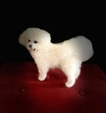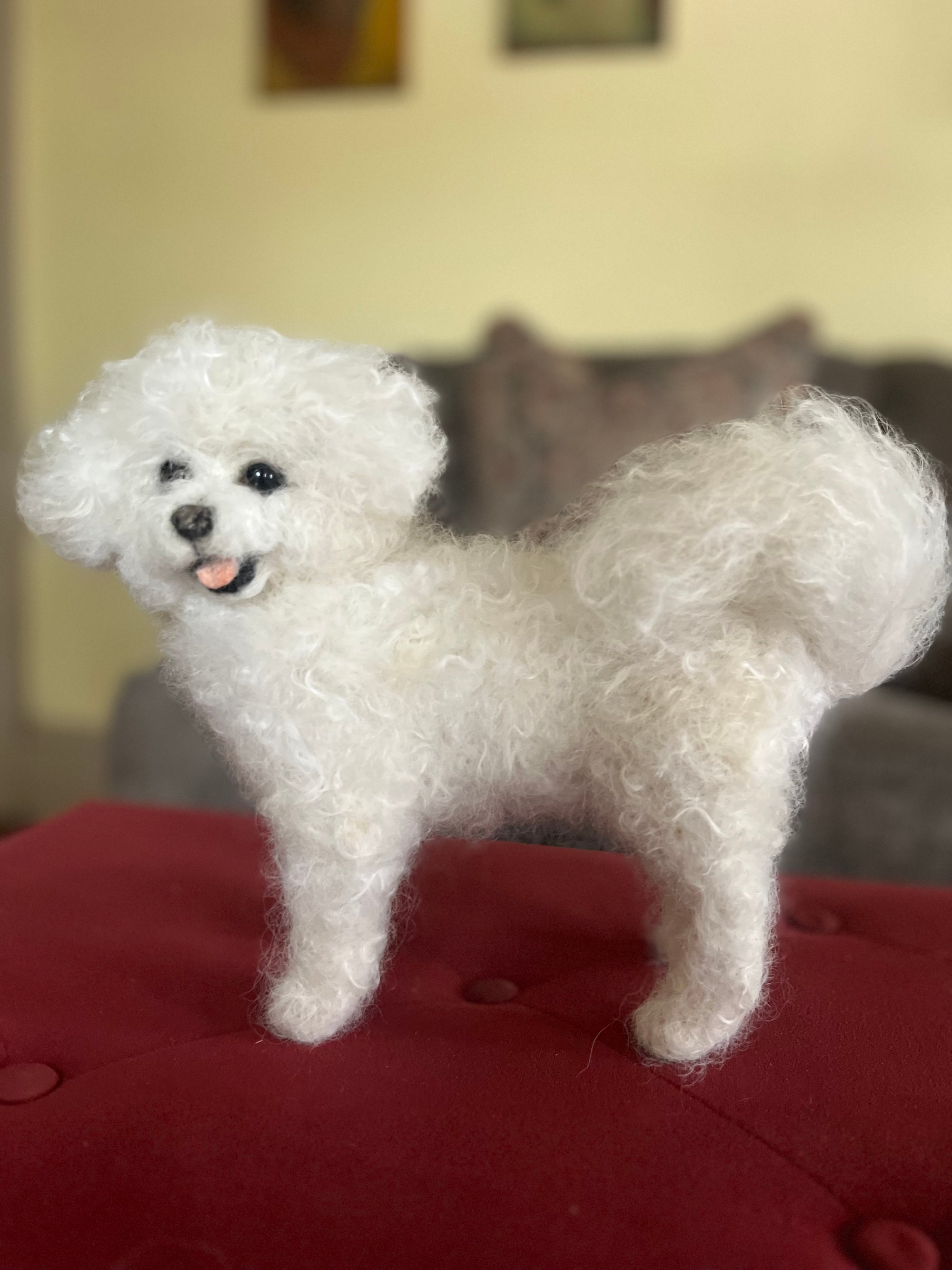 Felted 9”Bichon that is made from Cotswold locks wool.