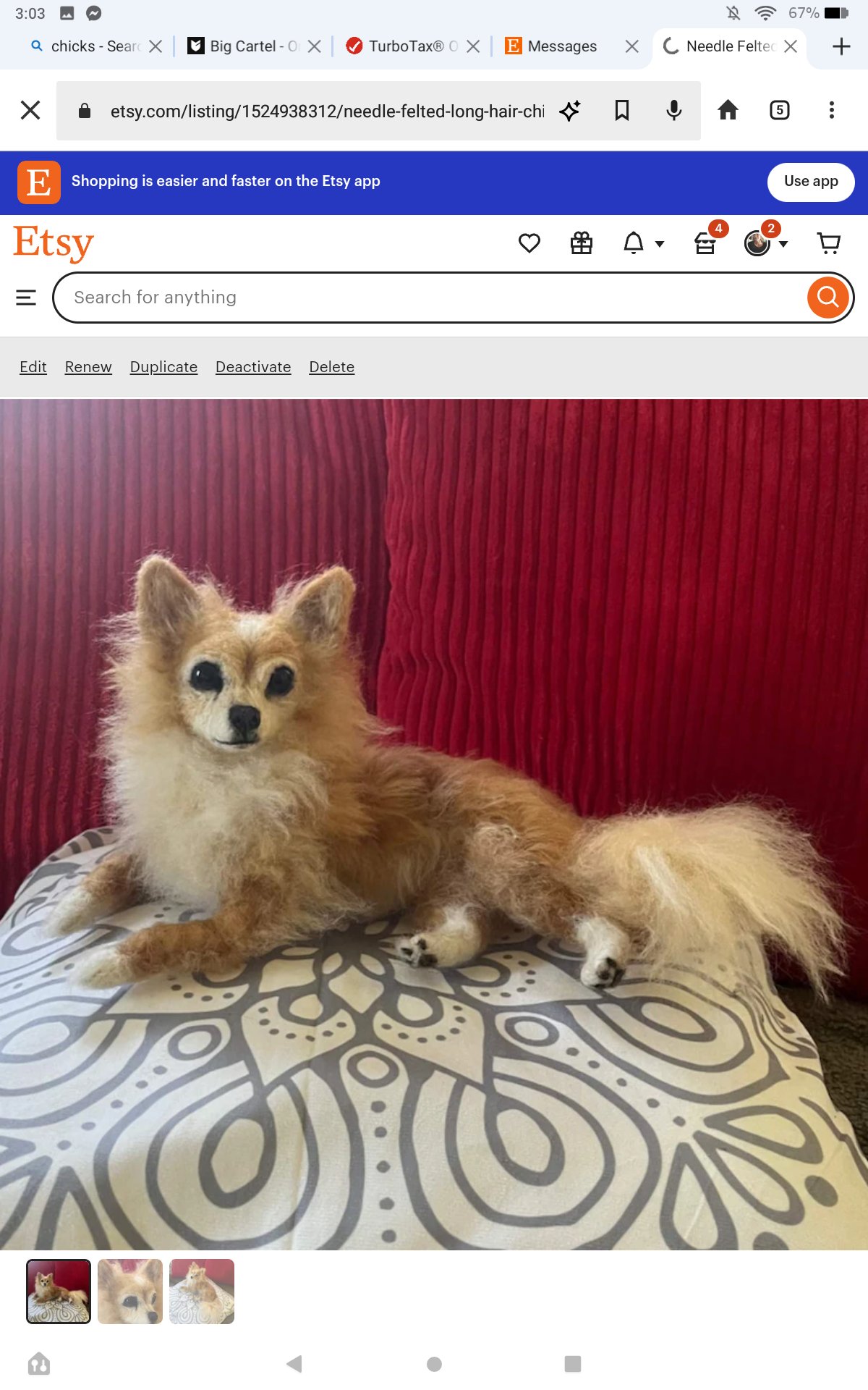 needle felted 6" or 9" Custom made of your own dog. Choose any pose( let me know in message) .send photos to my email; [email protected]